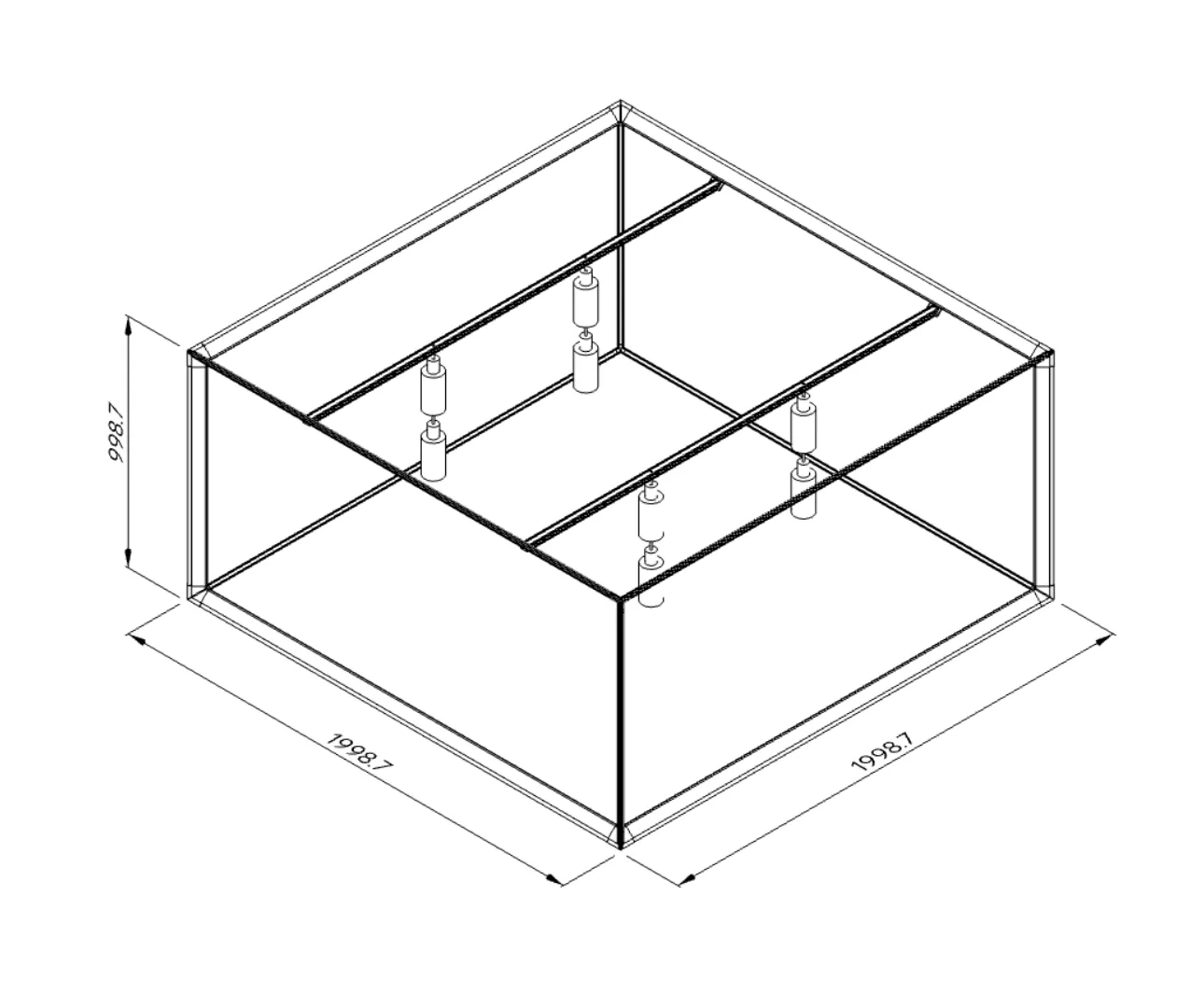 • Wymiary zewnętrzne: 200×200×100 cm