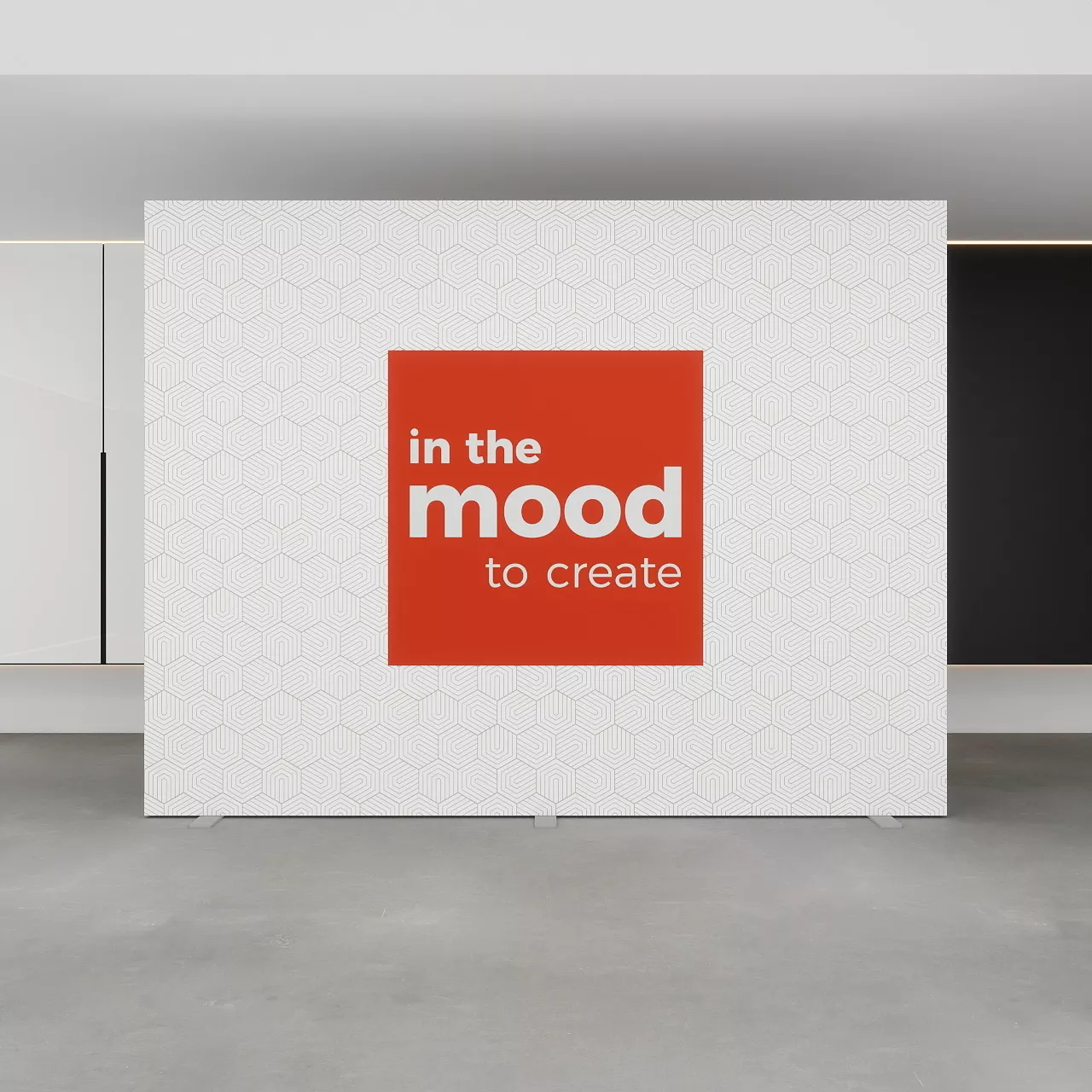 Ścianka posiada grafikę dwustronną na tkaninie Samba ST, ale jeśli potrzebujesz jednokierunkowej ekspozycji, można zastosować tkaninę Blockout, która blokuje światło i sprawia, że tył jest w pełni czarny. Opcja ta dostępna jest w konfiguratorze Creator.