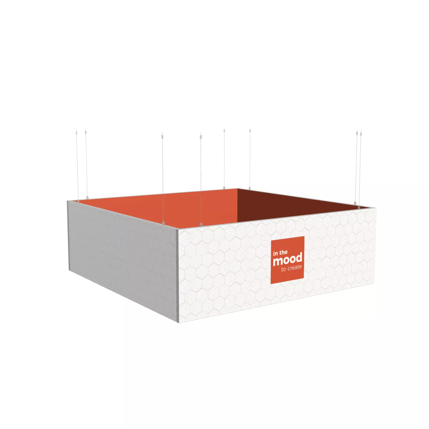 Kwadratowe podwieszenie z profilu 50 mm – większy format i grafika po obu stronach ram