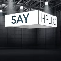Podwieszenie Smart Frame S2 S100LED o wymiarach 400×400×100 cm to wariant w układzie „L”, składający się z dwóch ram ustawionych pod kątem prostym. Dzięki otwartej konstrukcji system idealnie sprawdza się w strefach narożnych stoisk, umożliwiając prezentację marki z dwóch stron przy jednoczesnym zachowaniu lekkiej, przestrzennej formy. Podświetlane grafiki tekstylne na obu bokach zapewniają wysoką widoczność i profesjonalny efekt wizualny, przyciągając uwagę odwiedzających z różnych kierunków.