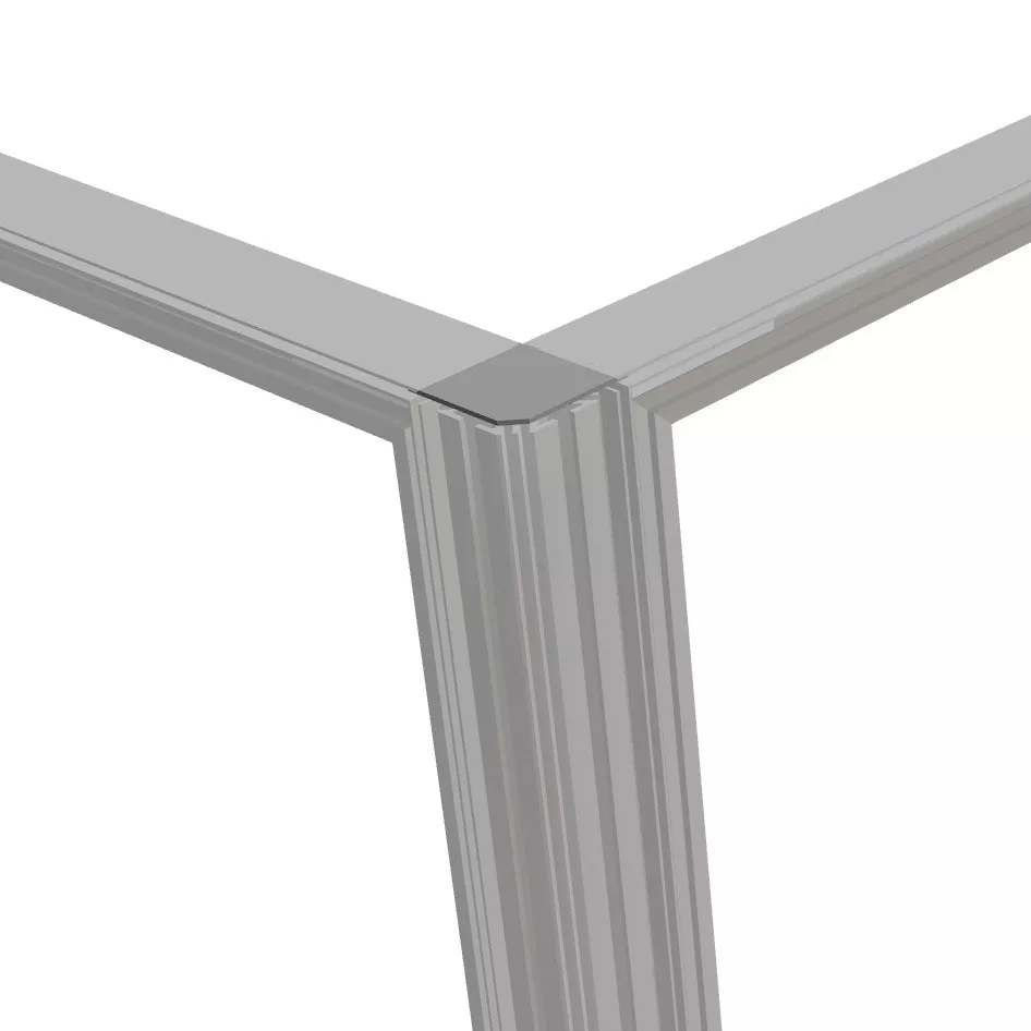 Podwieszenie Smart Frame S4 S50 o wymiarach 400×400×100 cm w wariancie łączenia narożnego to rozwiązanie, które zapewnia ciągłość grafiki na całym obwodzie. Dzięki specjalnym słupkom narożnym z podwójną nutą, tkanina wpina się bezpośrednio w narożnik, co daje jednolity efekt wizualny – grafika przechodzi płynnie przez wszystkie narożniki, bez przerw i widocznych rantów profili.