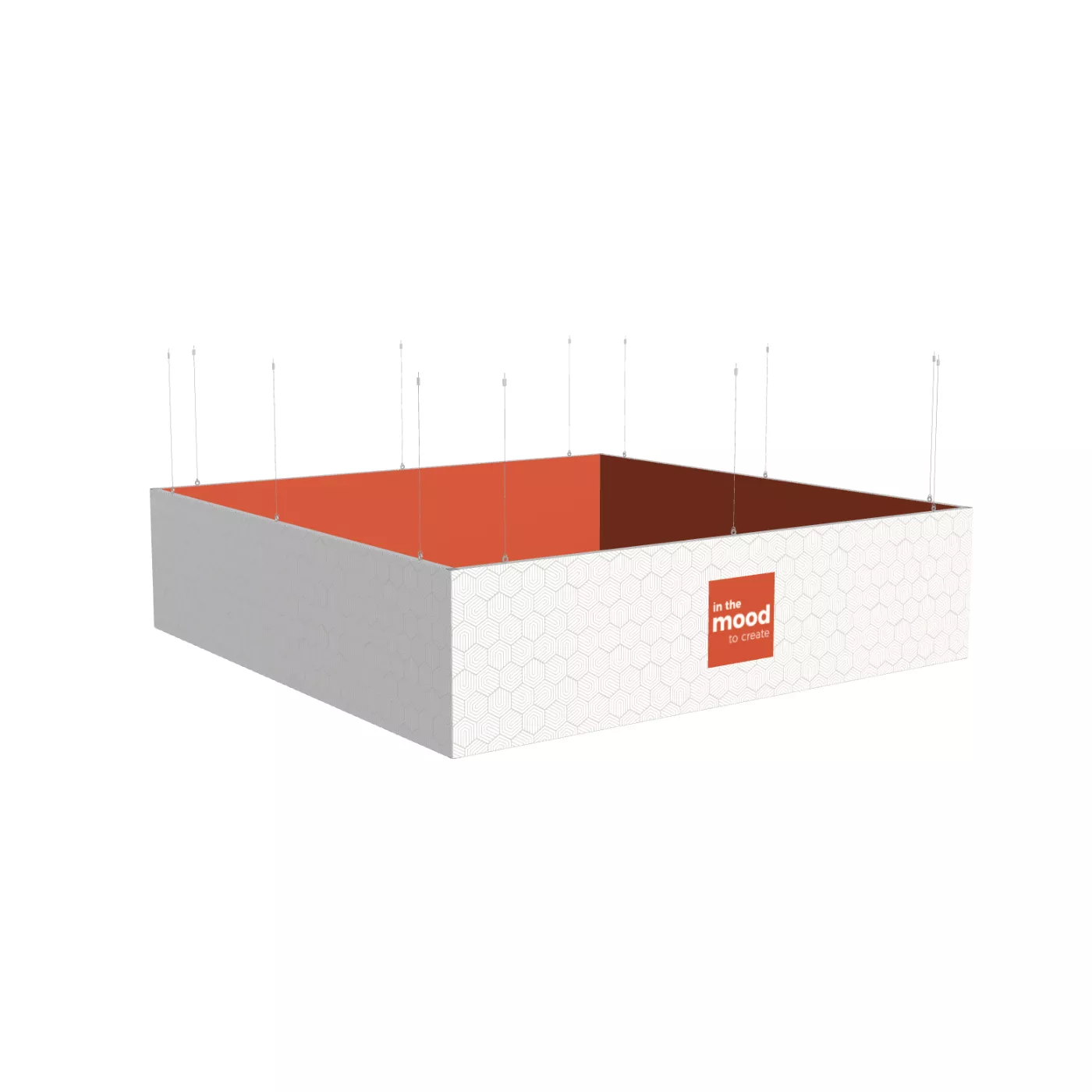 Kwadratowe podwieszenie z profilu 50 mm – pełna grafika w narożnikach, bez widocznych przerw