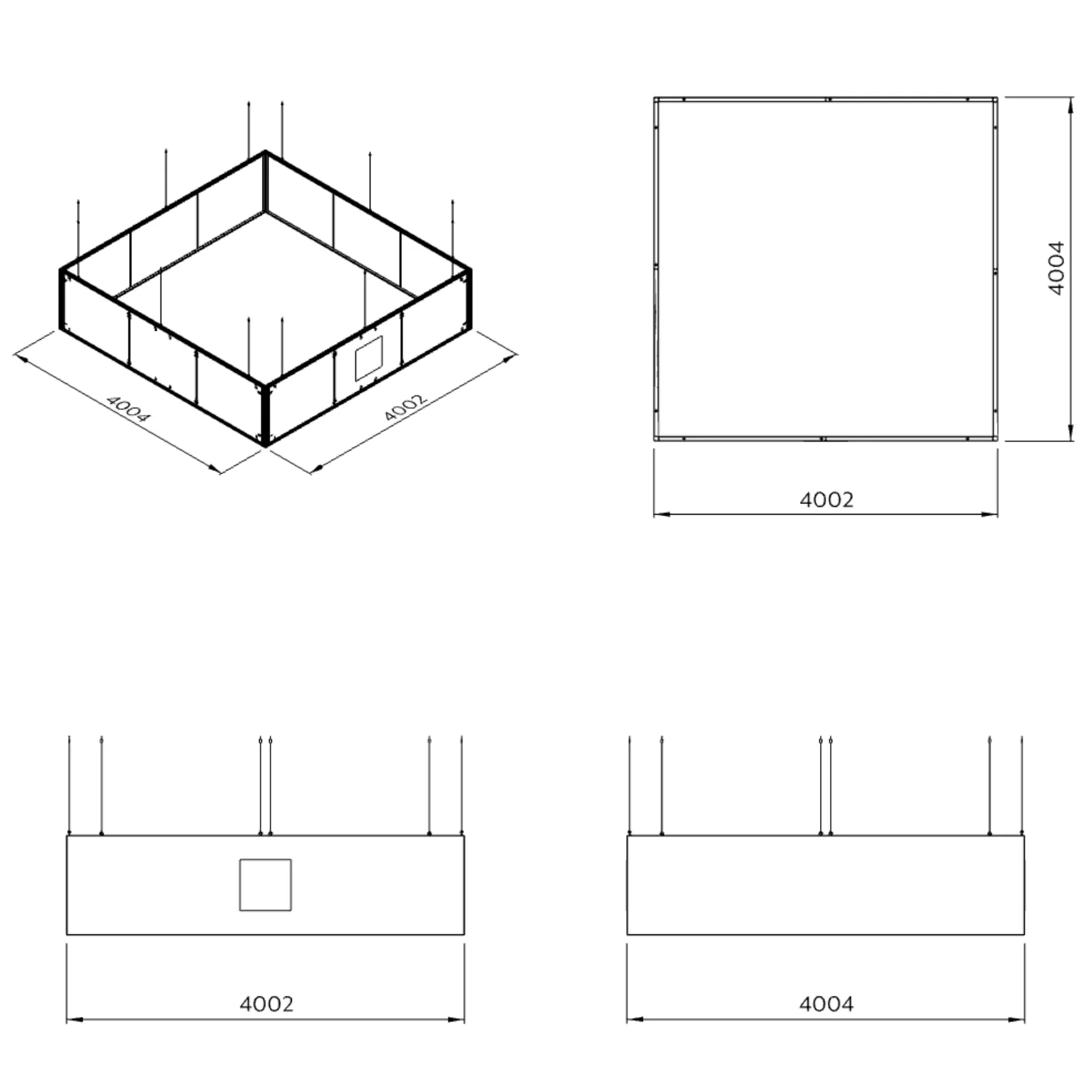 Podwieszenie Smart Frame S4 S50 – 400×400×100 cm, łączenie narożne