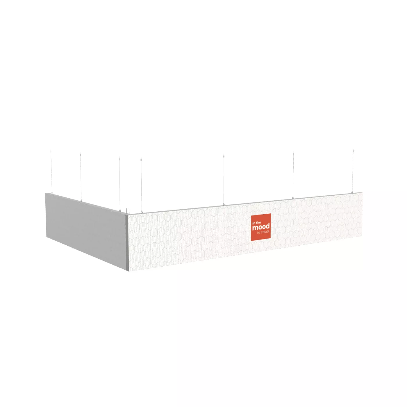 Podwieszenie w układzie „L” – dwie ściany ekspozycyjne, prostokątny format i równomierne podświetlenie LED