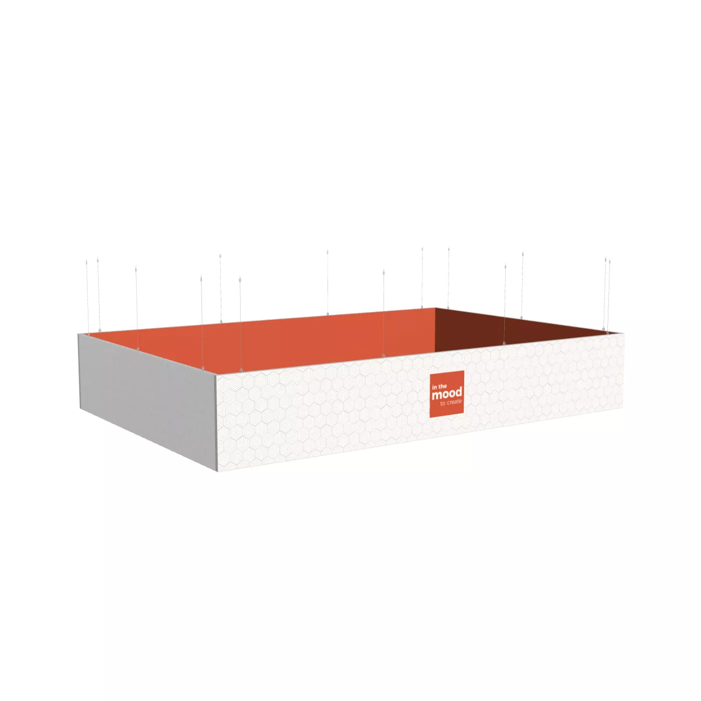 Prostokątne podwieszenie z profilu 50 mm – duży format i grafika po obu stronach ram