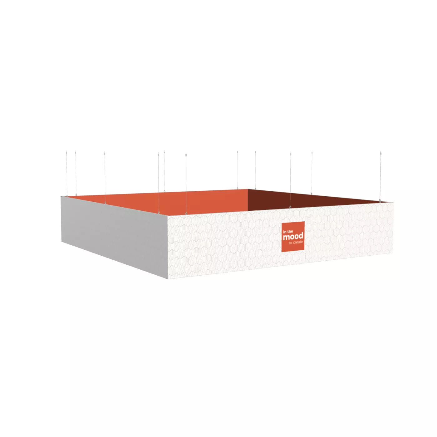 Kwadratowe podwieszenie z profilu 50 mm – efekt ciągłej grafiki dookoła, bez przerw w narożnikach