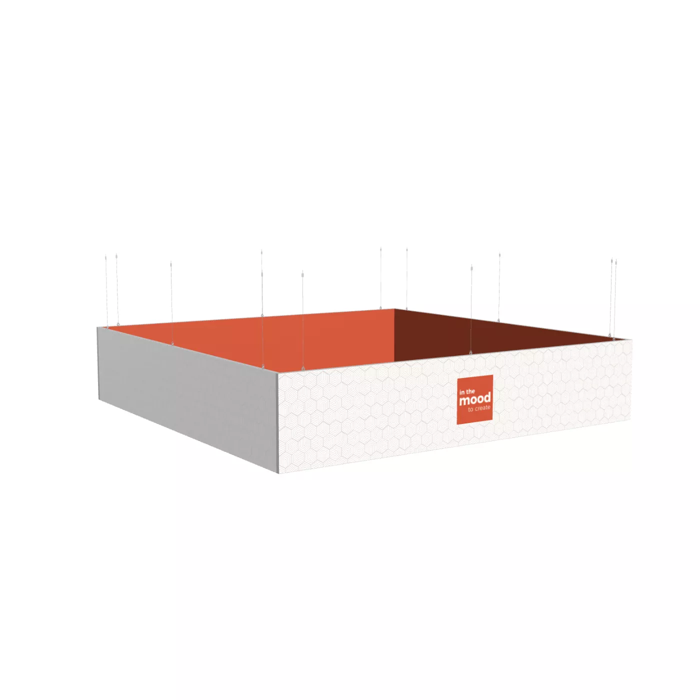 Kwadratowe podwieszenie z profilu 50 mm – duży format z grafiką po obu stronach ram