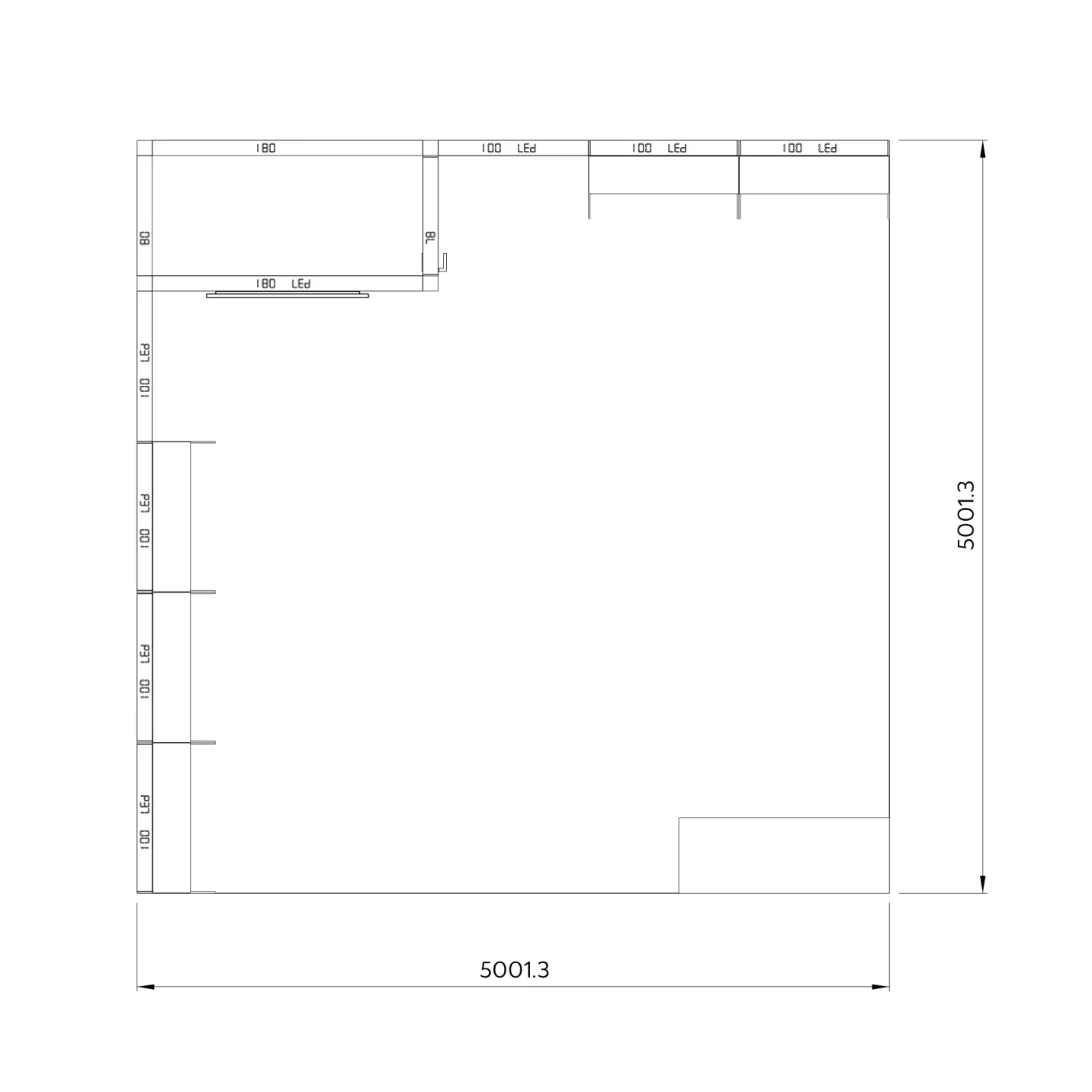 5x5m - stoisko Modularico M100 LED układ L-04255M100